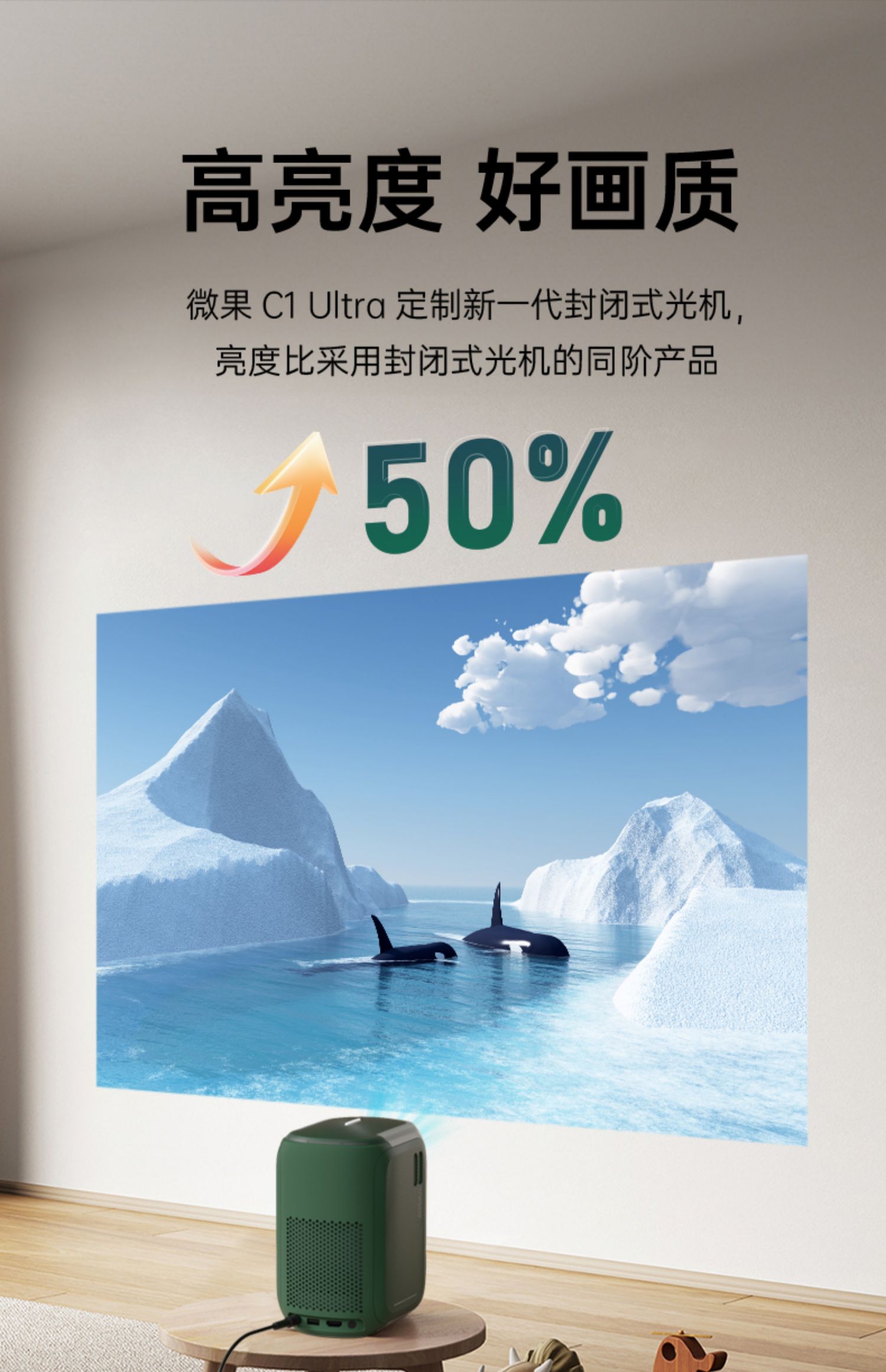 微果C1 Ultra智能投影仪高清1080P家用办公智能家庭影院客厅卧室小型便携高亮投影机宿舍投墙