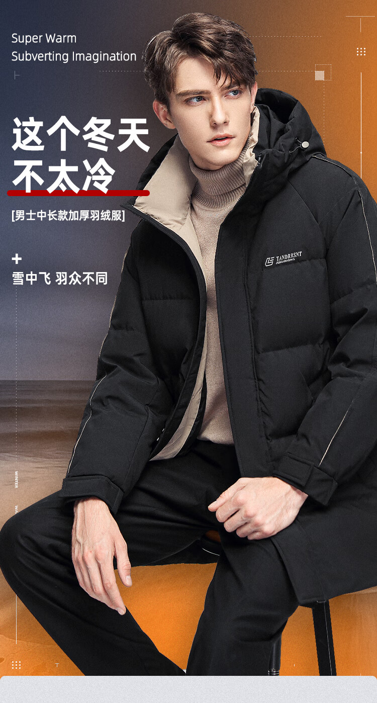 商品名称:雪中飞鹅绒羽绒服中长款连帽加厚保暖商务6936933031764 黑色/橄榄绿/浅卡其 可选 170-195 可选 下单备注颜色和尺码