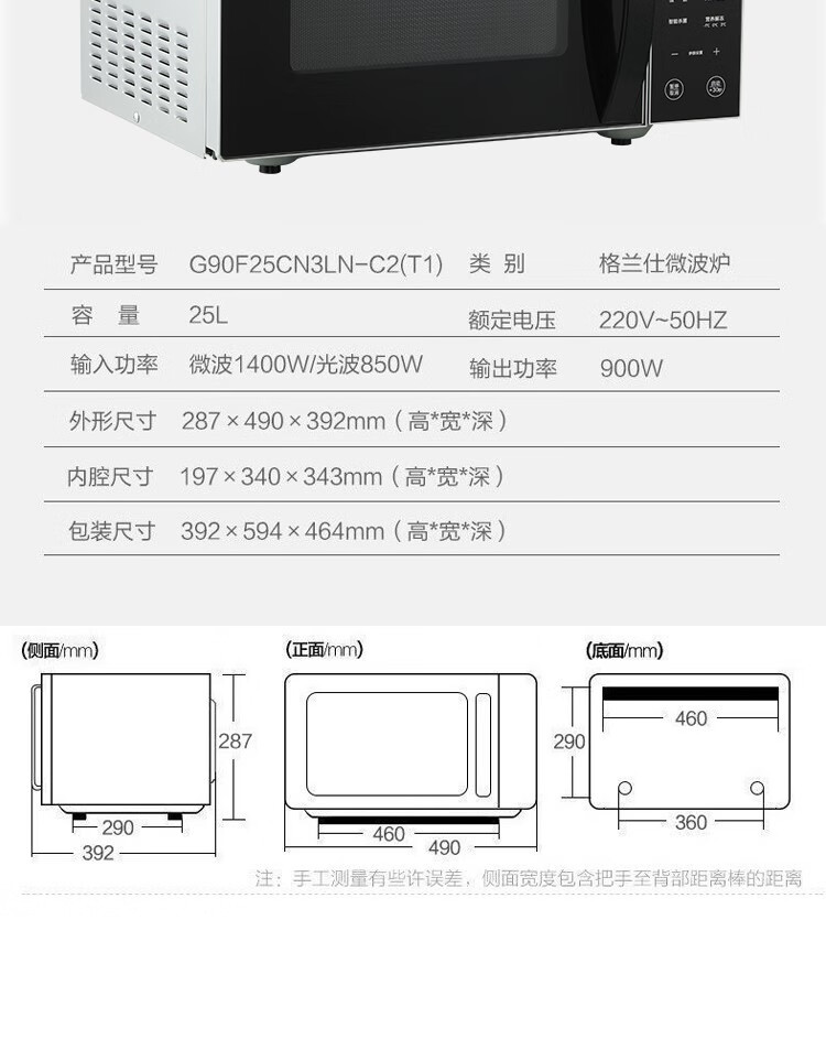 商品名称:格兰仕(Galanz) 微波炉 光波炉 烤箱一体机 智能家用平板 25L大容量 升级款900瓦速热 G90F25CN3LN-C2(T1) 6955846513082