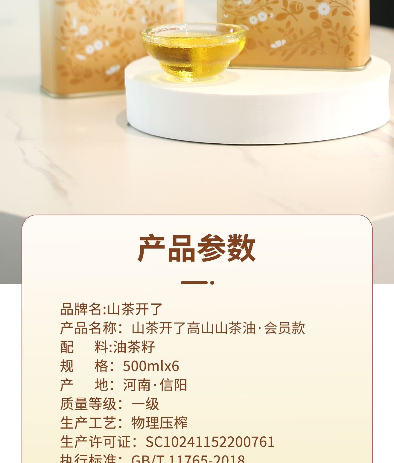 商品名称:山茶开了 高山.山茶油会员系列(白色)箱装500ml*6