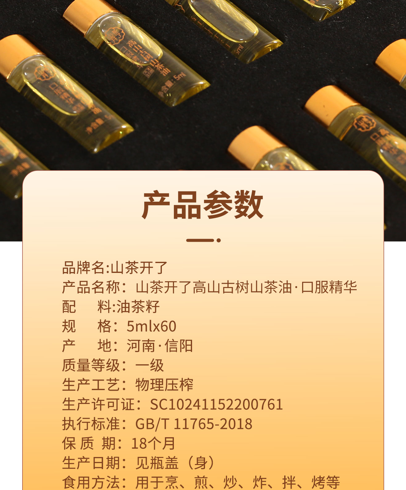 商品名称:山茶开了 高山古树山茶油口服液精华5ml*60