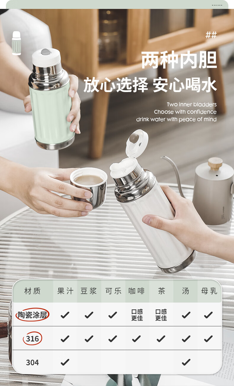商品名称:AKS保温杯316不锈钢水杯 保冷水杯 奶昔白/氧气绿【陶瓷涂层内胆】 350ml