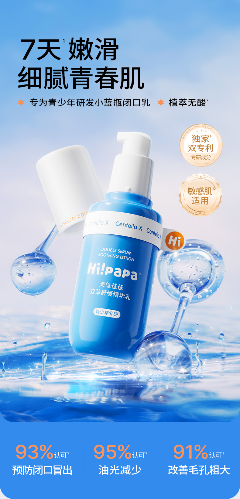 商品名称:海龟爸爸青少年油痘肌三件套(双萃控油祛痘洁面乳80g+双萃控油精华水150ml+双萃舒缓精华乳100g)
