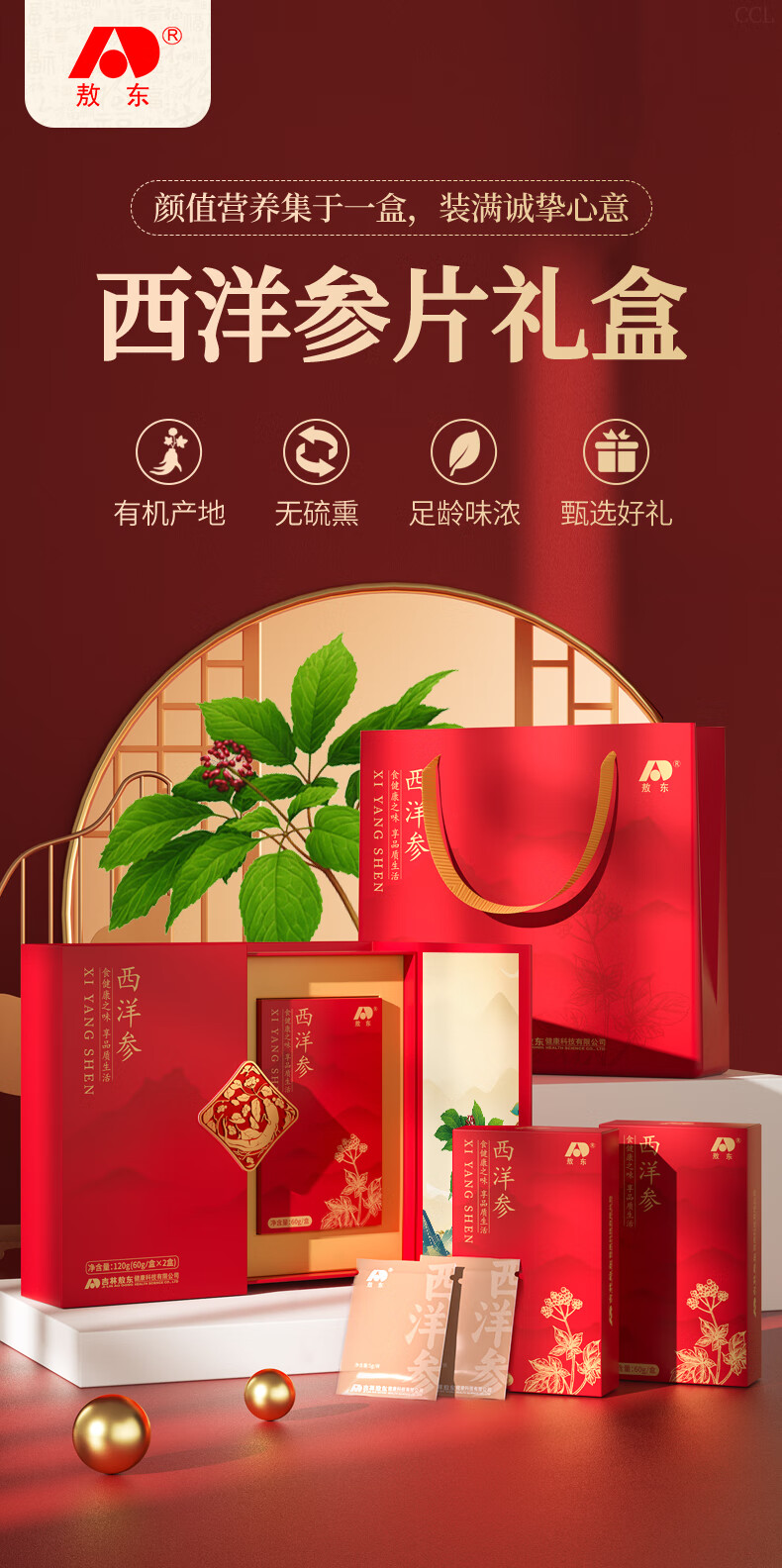 商品名称:敖东西洋参开门红礼盒 120克 (5克*12小袋/盒*2盒)