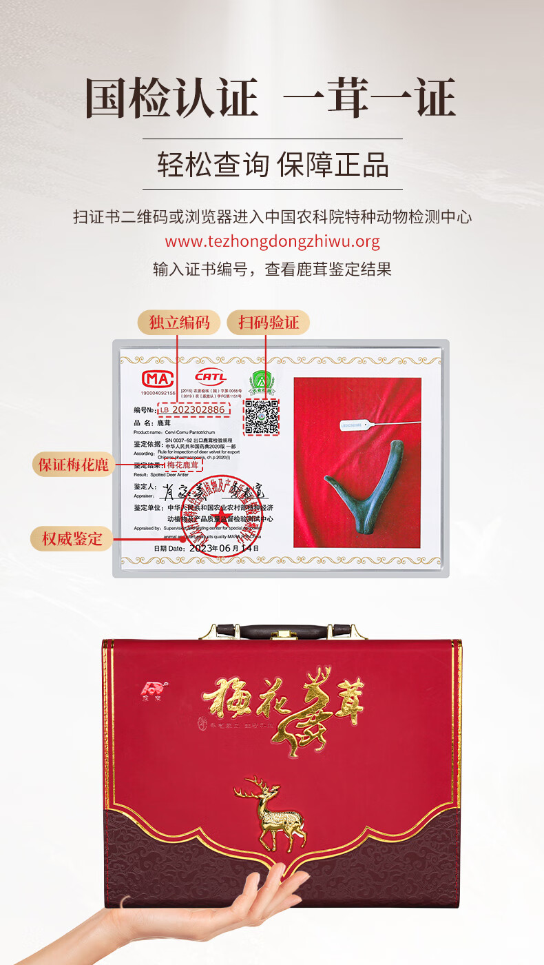 商品名称:敖东梅花鹿整枝鹿茸礼盒135克左右