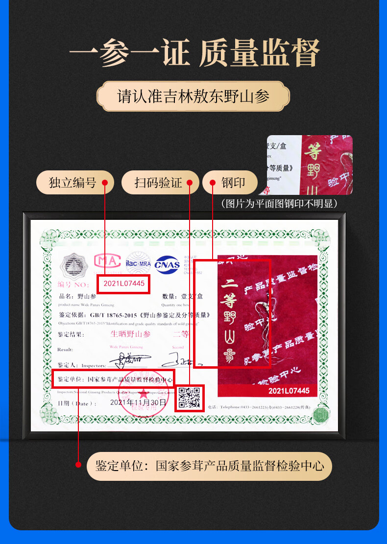 商品名称:敖东国检二等生晒野山参 1支/盒 20年以上