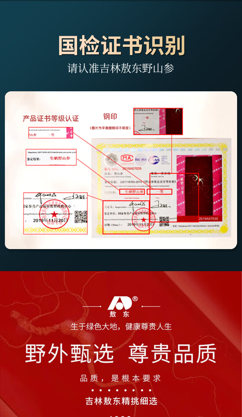 商品名称:敖东国检80一等野山参 1支/盒 40年以上