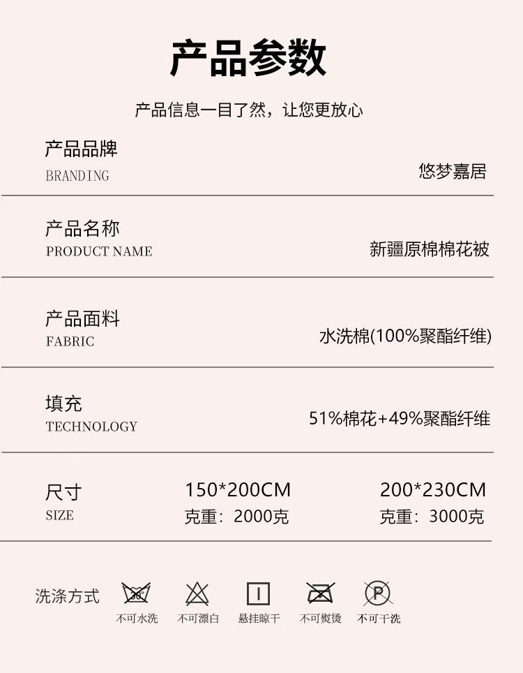 商品名称:悠梦嘉居 YB-14232新疆原棉棉花被200*230(内蒙、新疆、西藏、青海、宁夏、甘肃运费另算)