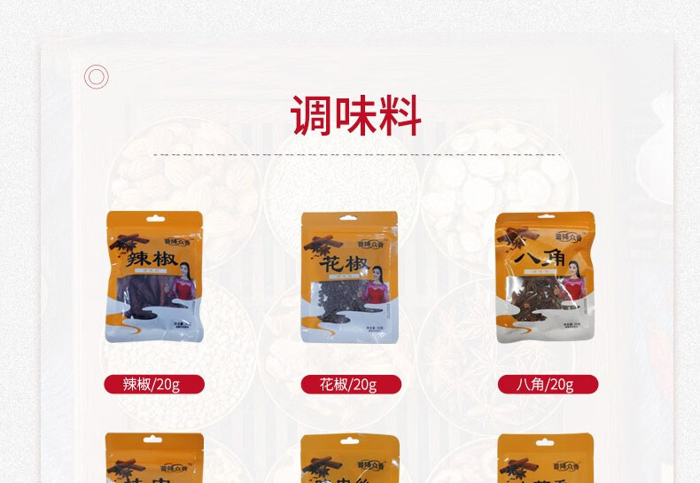 商品名称:J-普降众香 家用调味料香料组合 烧烤调味料卤肉料包 香叶桂皮茴香辣椒花椒 手提礼盒装