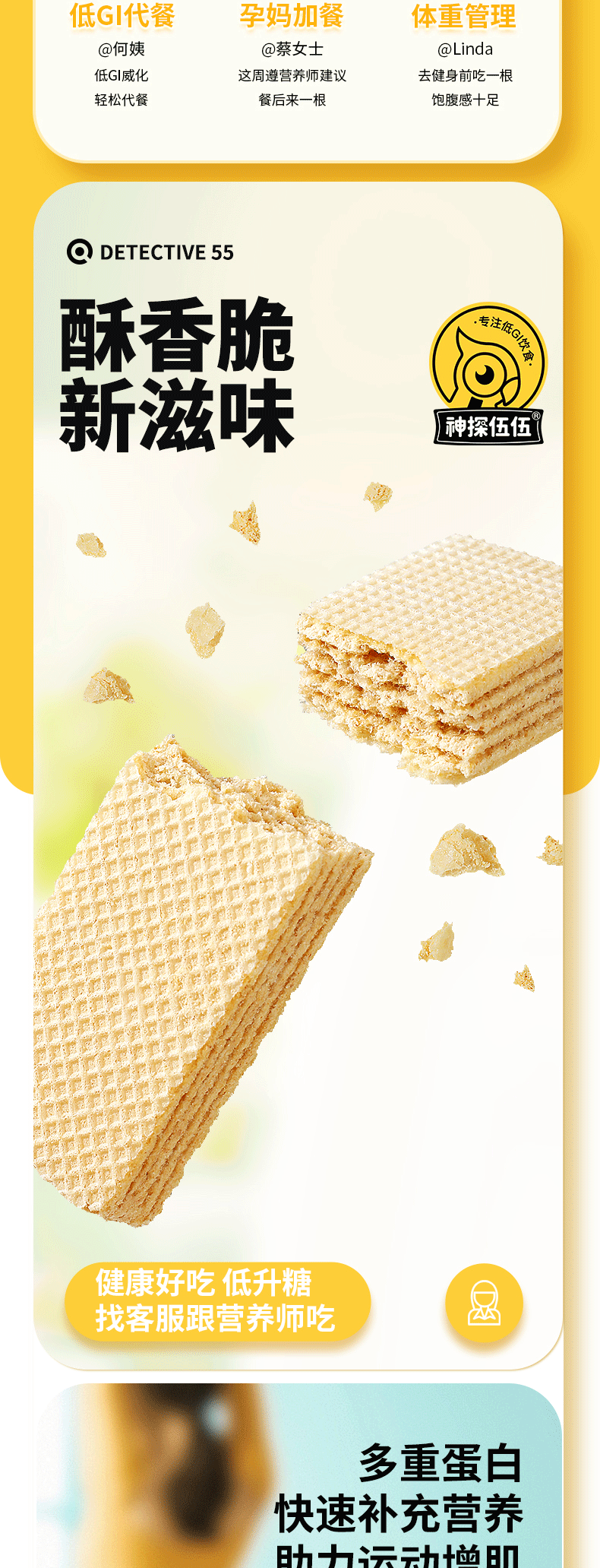 神探伍伍 低升糖指数威化饼干180g/盒 6975016050230
