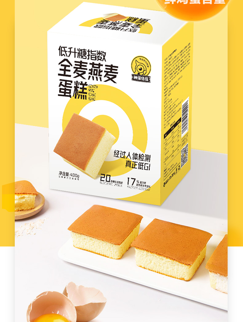 商品名称:神探伍伍 低升糖指数全麦燕麦蛋糕400g/盒 6975016050490