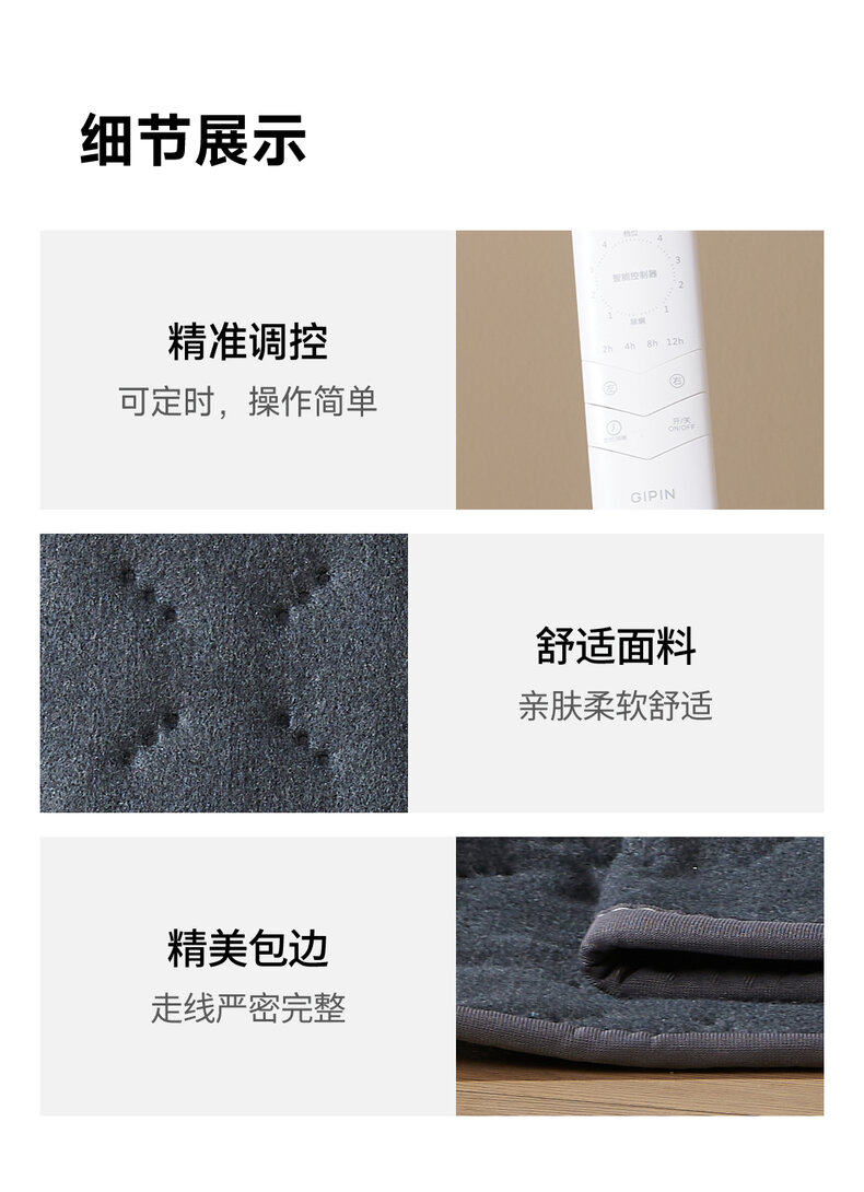 商品名称:即品 灰色无纺布5X除螨针刺棉电热毯180*150 6971594970496