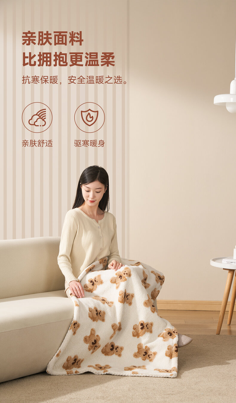 即品 小熊拉毛印花盖毯150*80 6972710392994