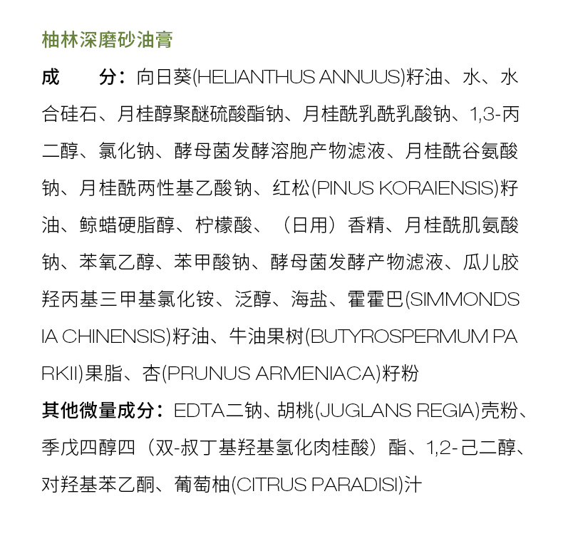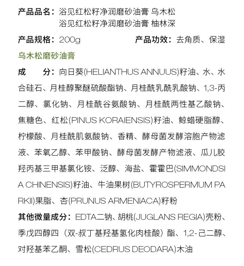 商品名称:浴见红松籽净润磨砂油膏200g-柚林深