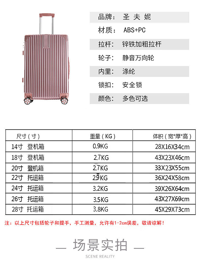 商品名称:圣夫妮PVC小型复古旅行箱 18英寸SFN902-18 银/黑/红/玫瑰金/墨绿 6972773223976