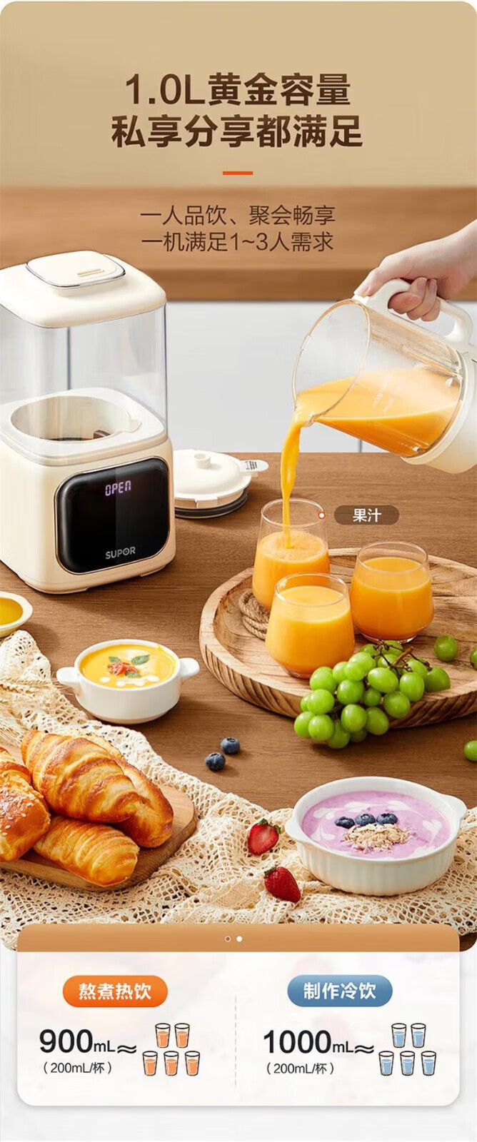 商品名称:集采 苏泊尔破壁机可拆洗家用预约定时轻音豆浆机搅拌机早餐辅食机婴儿料理机 SPX306R 1.5l双杯低噪秒拆洗
