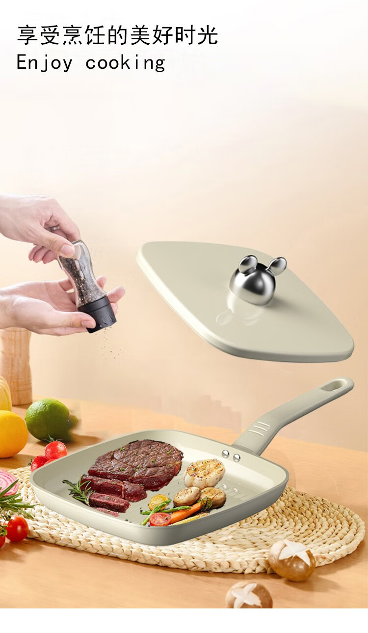都市太太珐琅浅煎陶瓷煎烤锅不粘锅家用24CM燃气灶电磁炉通用白色 DSJG 偏远另加运费 6959871603848