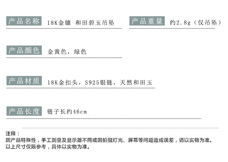 商品名称:馬传玉 18K金镶和田玉吊坠菠菜绿MCY110
