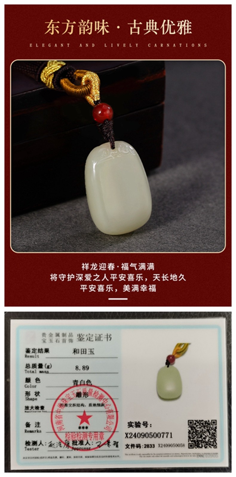 馬传玉鸿运祥龙和田玉无事牌吊坠MCY061
