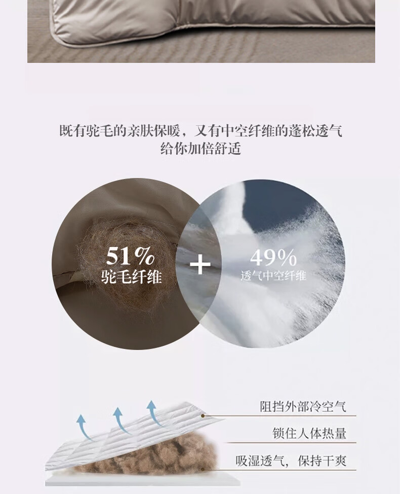 商品名称:梦洁家纺 驼毛四季被冬被双人床上用品 四季被:臻礼·美莉尔 200x230cm 6909338891752