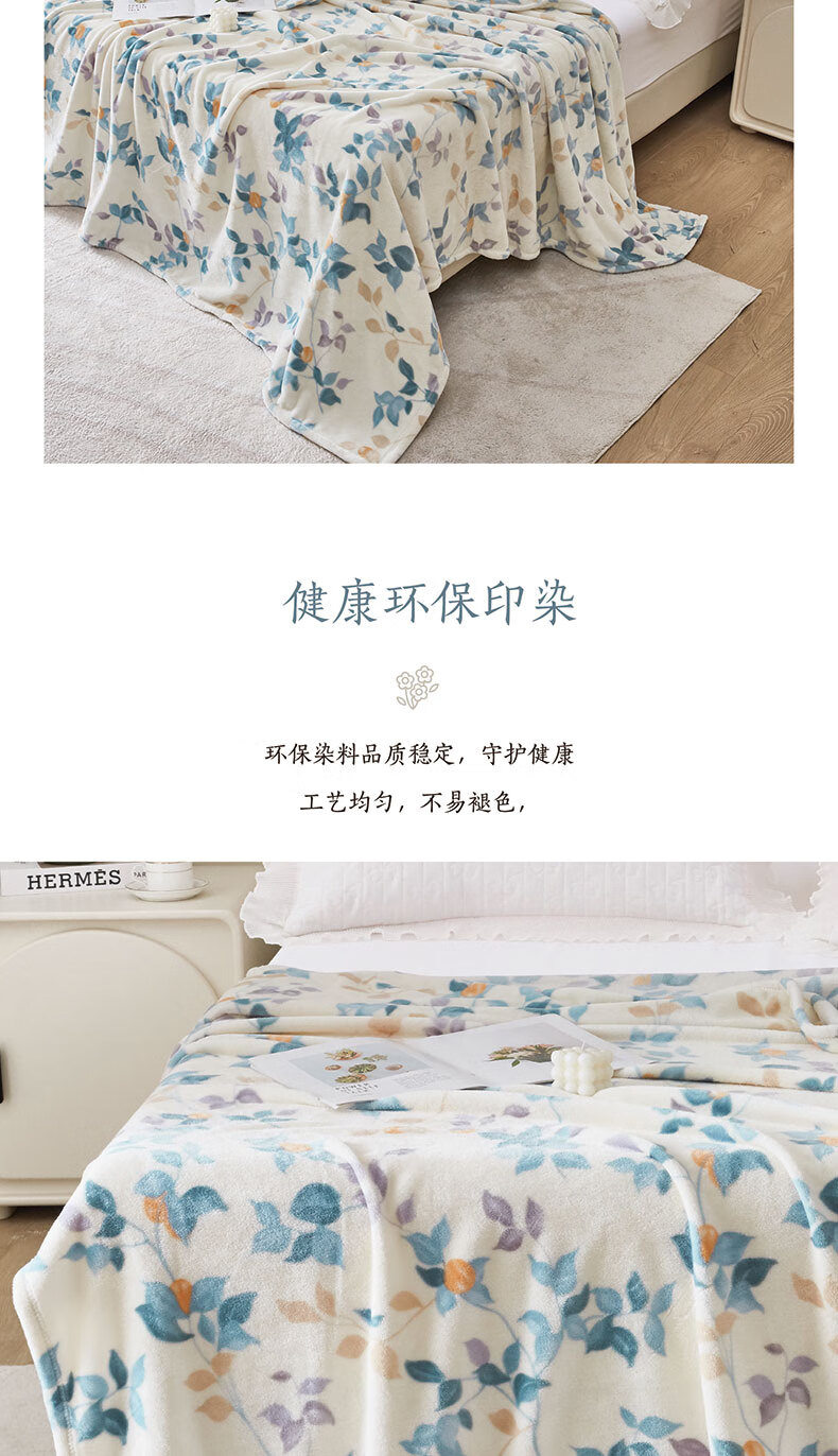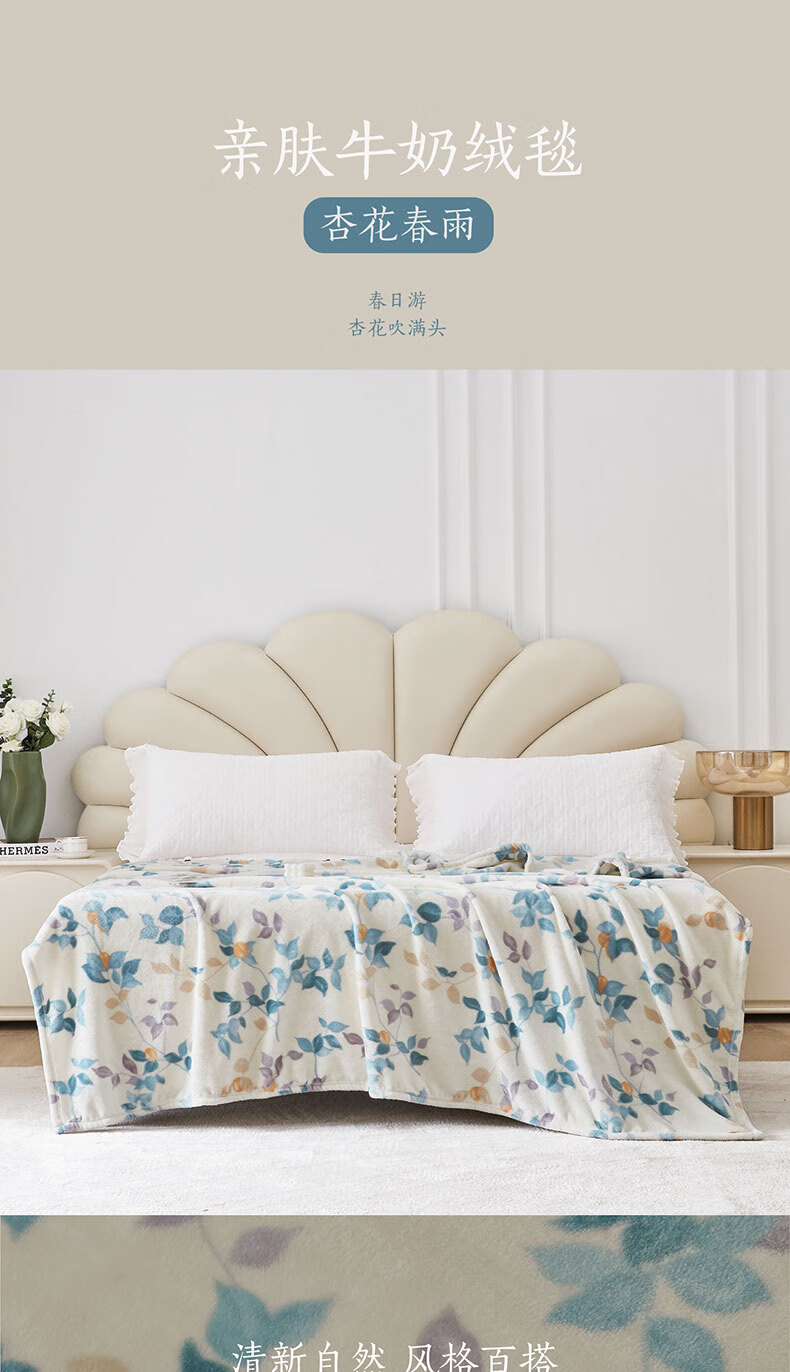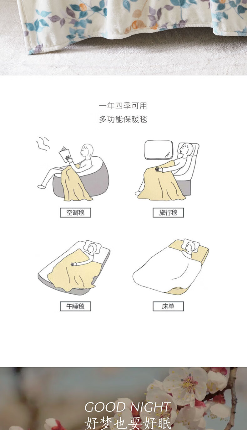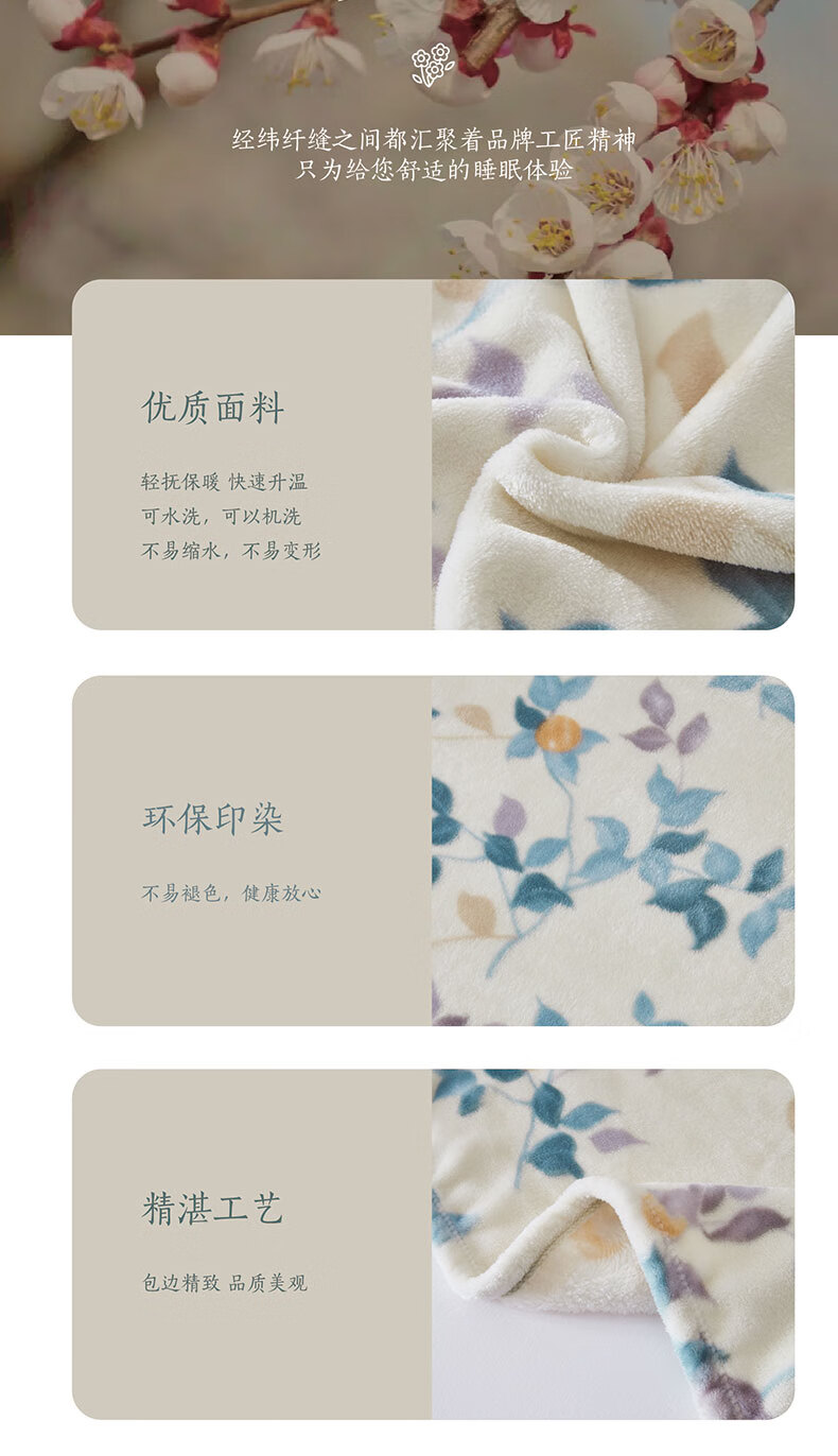 梦洁家纺 毛毯法兰绒秋冬宿舍办公室午睡毯子 杏花春雨 150*200cm 6909338250269