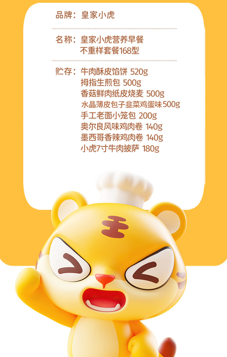 商品名称:皇家小虎168型 营养早餐不重样2680g