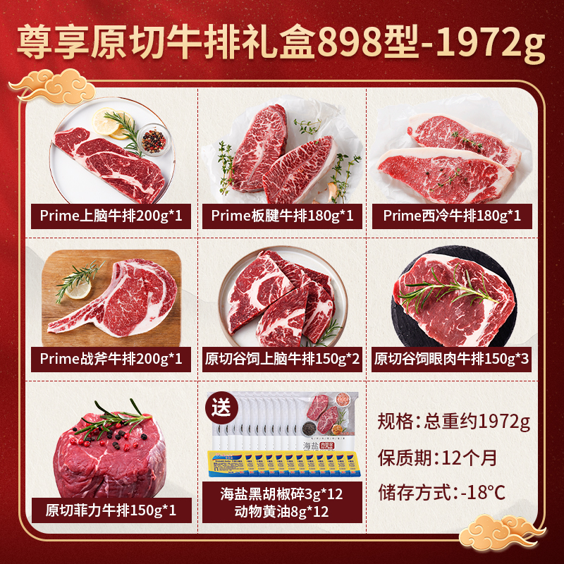 商品名称:肉管家尊享原切牛排礼盒898型 1792g