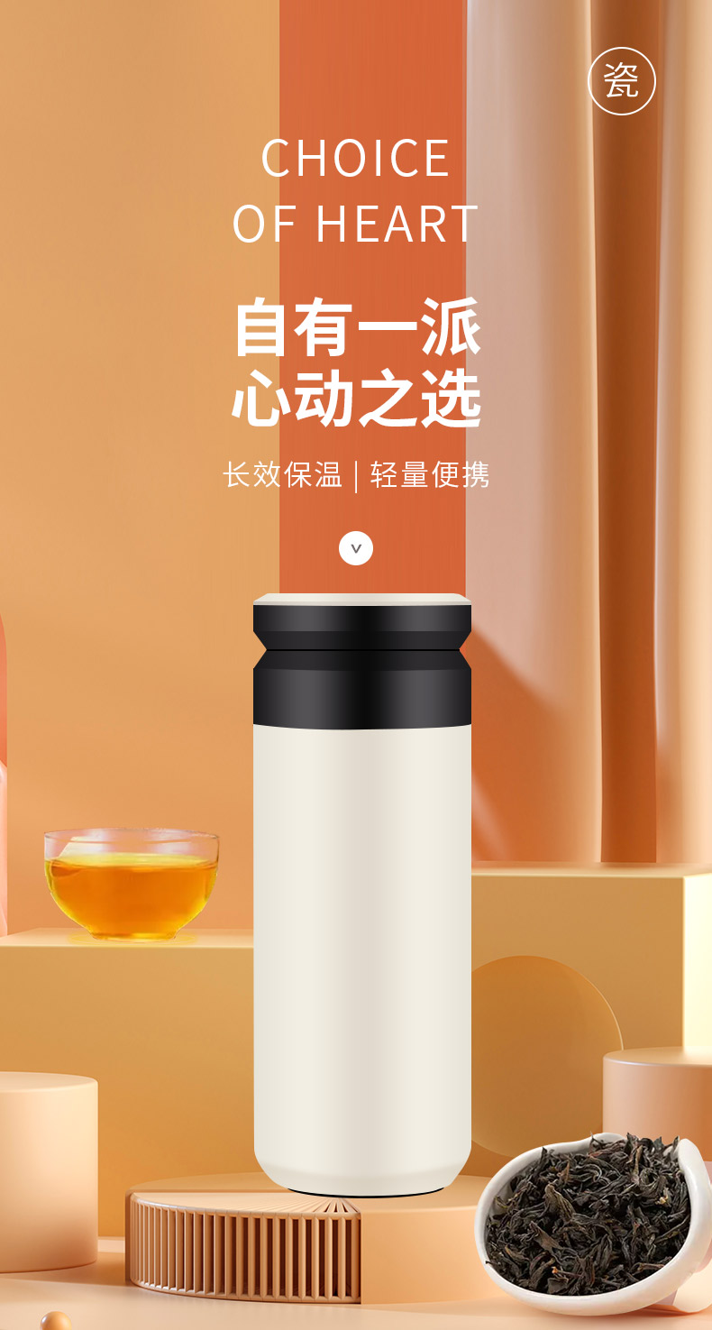 1.黑科技陶瓷内胆:无金属异味 保温 锁鲜 耐酸碱,冷热酸甜都不惧怕 2.百搭魔法杯:咖啡、红茶、果汁、牛奶、中药都可泡