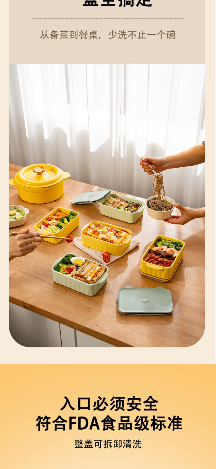 西屋Westinghouse西屋多功能饭盒猫猫猪猪盒学生便当盒陶瓷饭盒炖锅碗 小鹅黄 WCSN03/WCSN04翡翠绿