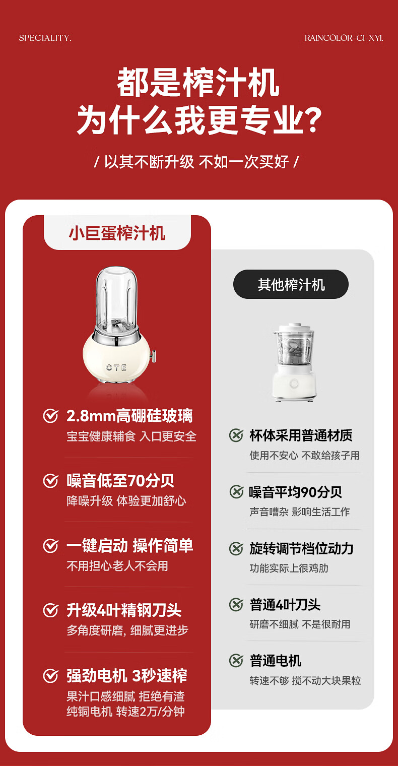商品名称:OTE小巨蛋套装--多功能果汁机400ml+保温杯(咖啡杯)220ml 奶白色/中国红/布鲁灰
