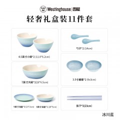 西屋美式陶瓷碗碟套装礼盒装家用餐盘组合饭碗炻瓷乔迁送礼色釉冰川蓝 23cm 11件套 WCTB11