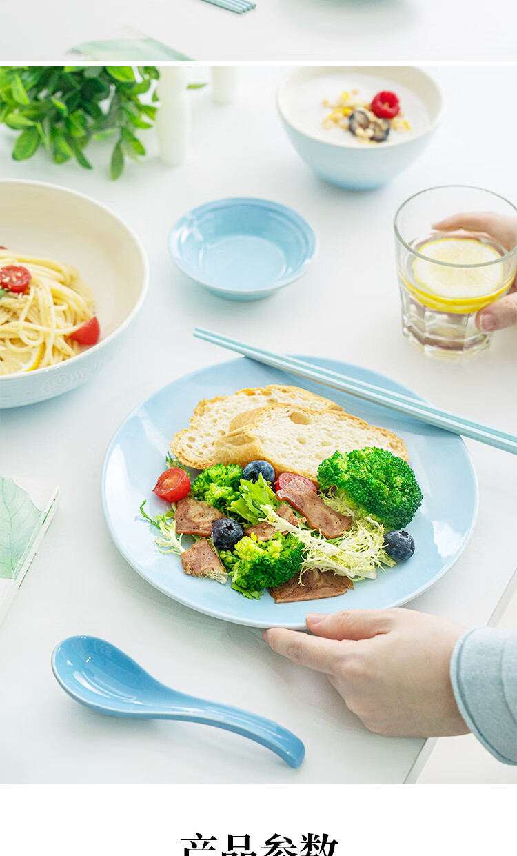 商品名称:西屋美式陶瓷碗碟套装礼盒装家用餐盘组合饭碗炻瓷乔迁送礼色釉冰川蓝 23cm 11件套 WCTB11