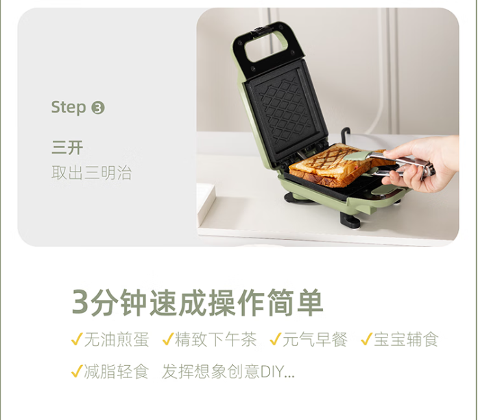 商品名称:ERNTE昂特 三明治机 面包早餐机 烤面包加深 吐司机 MC-1801(G)(复古绿-呆萌君)