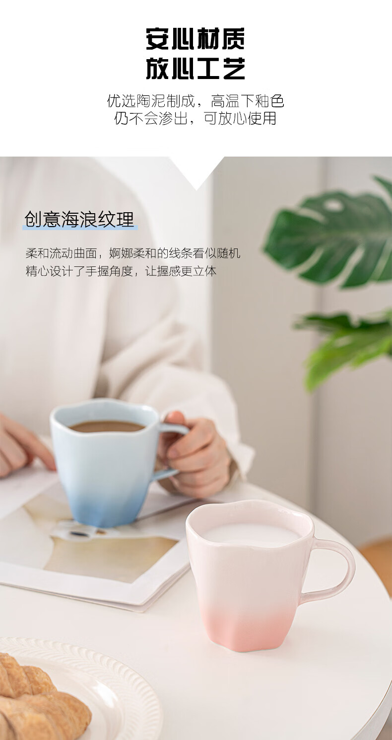 商品名称:西屋花瓣咖啡杯 马克杯创意渐变色 家用办公室茶杯早餐杯 西屋花瓣杯 单只 冰川蓝WCQS11 /WCQS12落樱粉