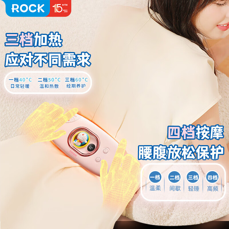 ROCKSPACE哆啦a梦暖宫腰带按摩仪姨妈神器发热痛经腰腹部按摩器 可app控制【粉色】3档热敷+4档震动+氛围灯 YP-N07