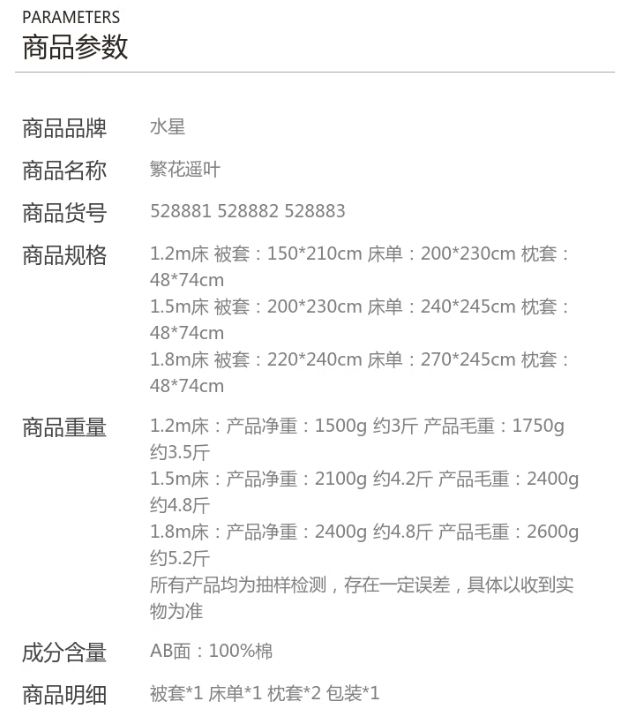 商品名称:水星家纺四件套床上纯棉100%全棉床单四件套单双人被套枕套1.5米床 繁花遥叶 528882 6923283294963