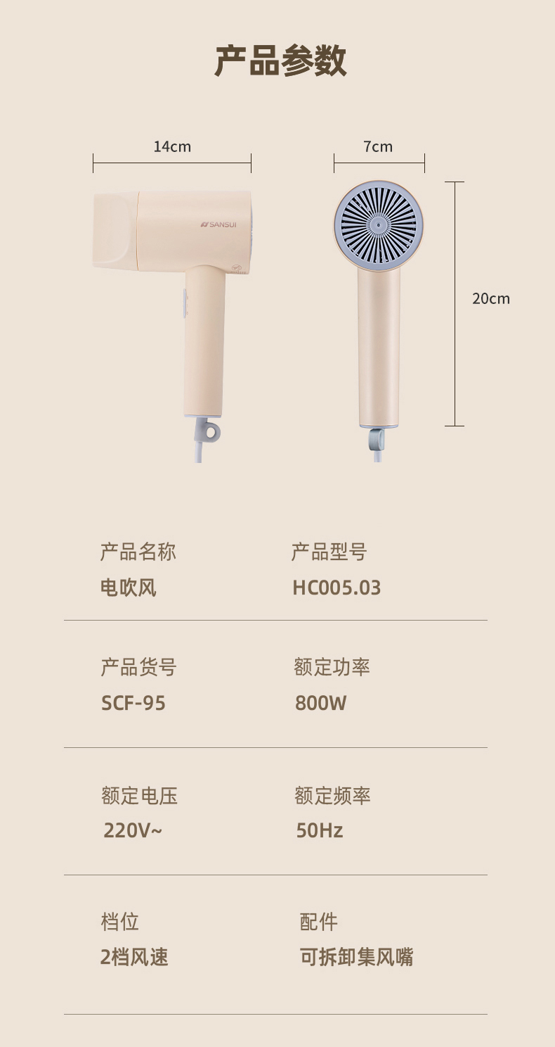 商品名称:山水/SANSUI 山水电吹风 SCF-95
