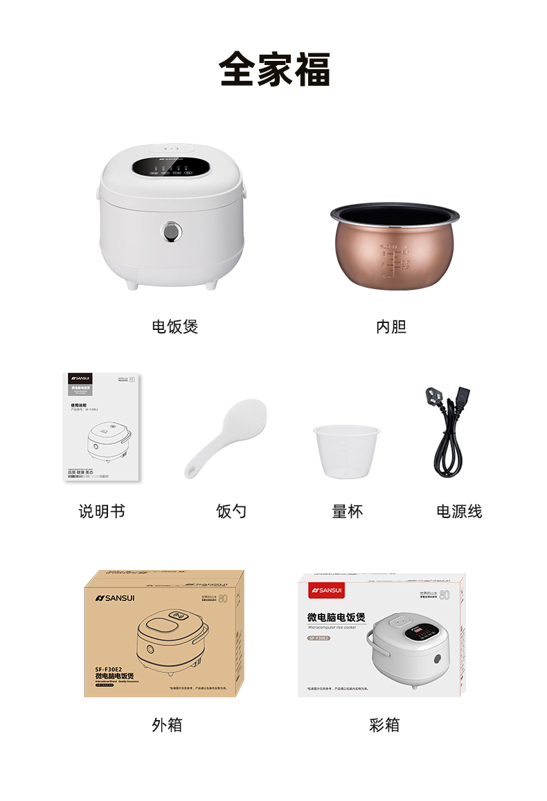 商品名称:山水/SANSUI 智能电饭煲(铝胆) SF-F30E2