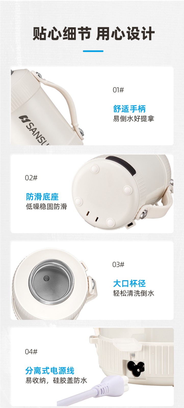 山水/SANSUI 便携真空电热水杯 (316不锈钢内胆) YY-12C07