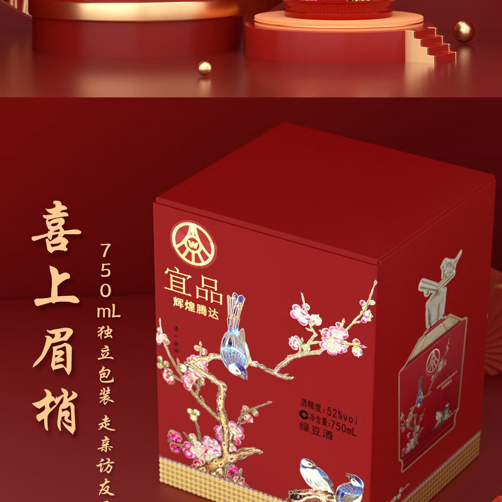 商品名称:五粮液 辉煌腾达 喜上眉梢 52度 750mlx2