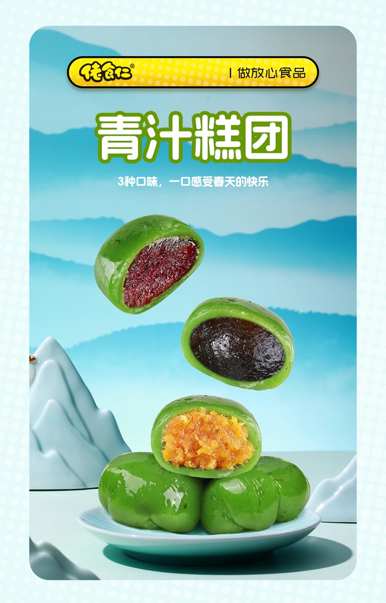商品名称:佬食仁青汁糕团3盒 258gX3盒(1盒6枚) 咸蛋黄肉松+红豆沙+黑芝麻 各一盒