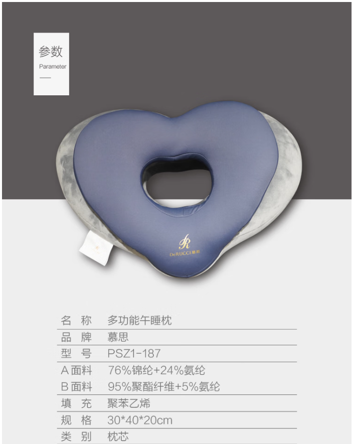 商品名称:慕思【璞宿】午睡枕专用趴睡枕午休枕头教室桌上趴着 蓝色 PSZ1-187 6974732745420