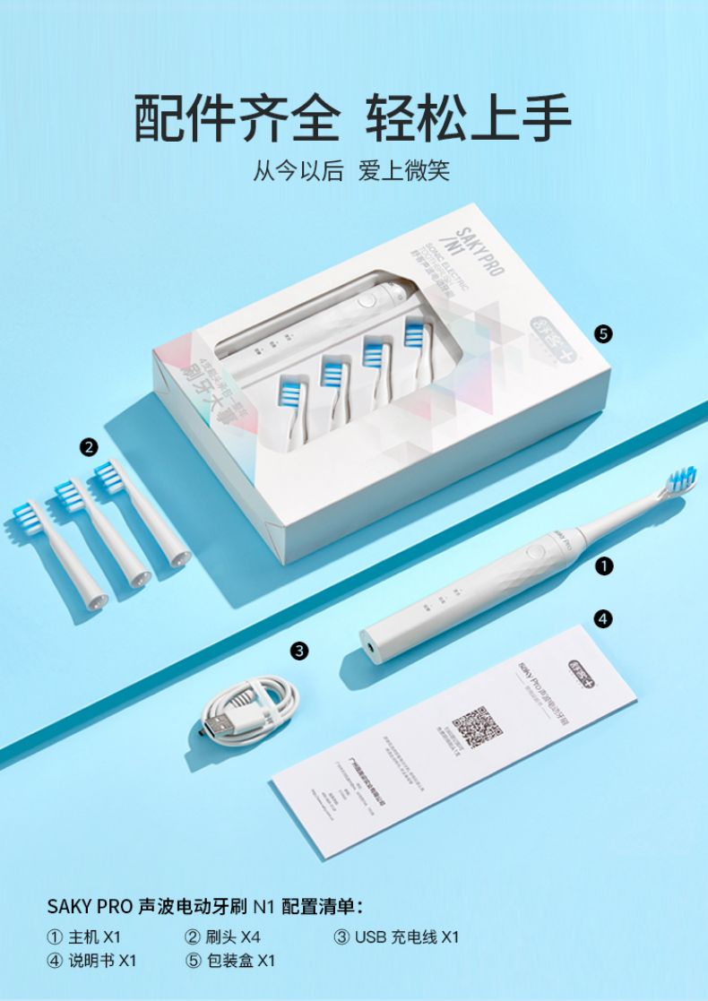 舒客 声波电动牙刷N1-白色(4刷头)6928471340668