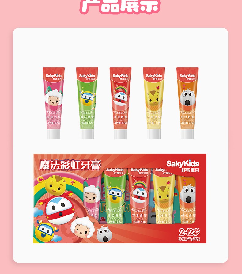 商品名称:舒客 宝贝魔法彩虹牙膏套装30g*5支 6940477429413