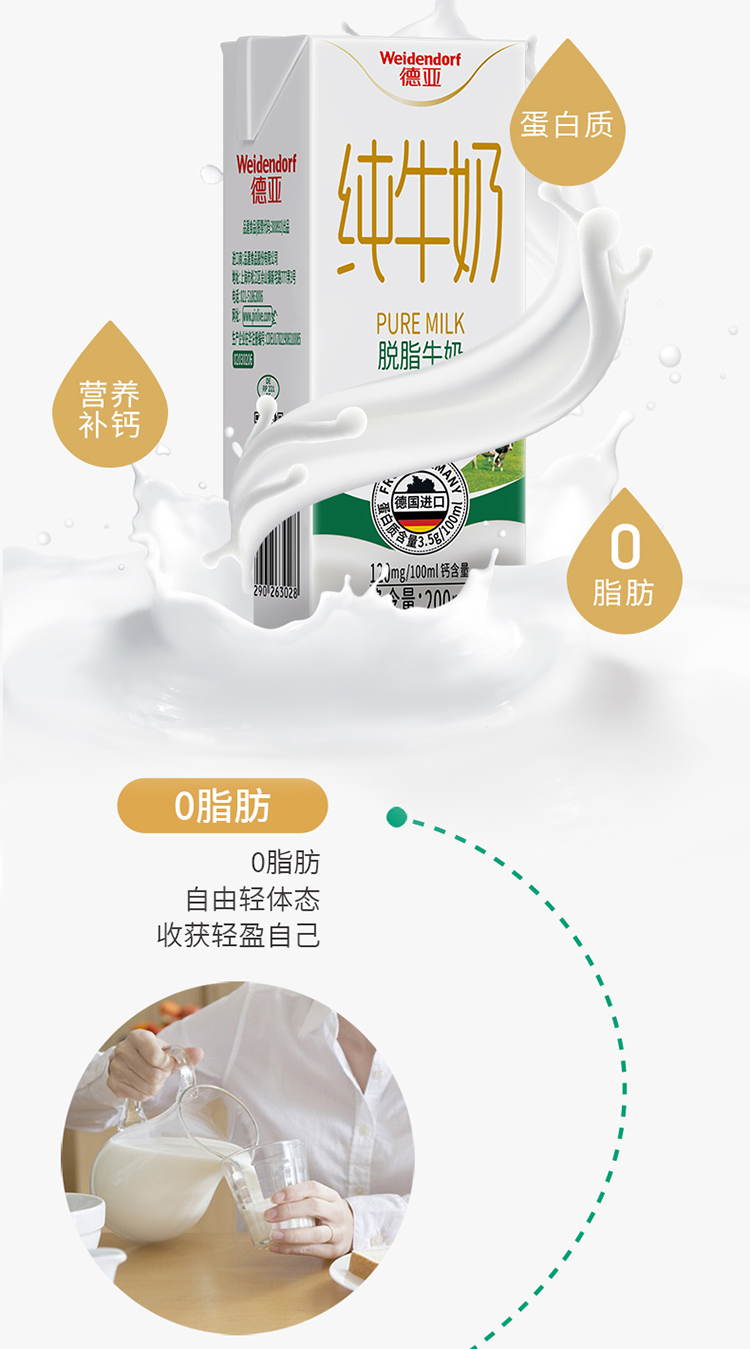 商品名称:德亚 欧洲优选脱脂高钙纯牛奶200ml*12盒 礼盒装高端送礼