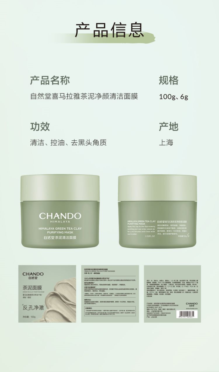 商品名称:自然堂喜马拉雅茶泥净颜清洁面膜100g ZHT-100CNM1