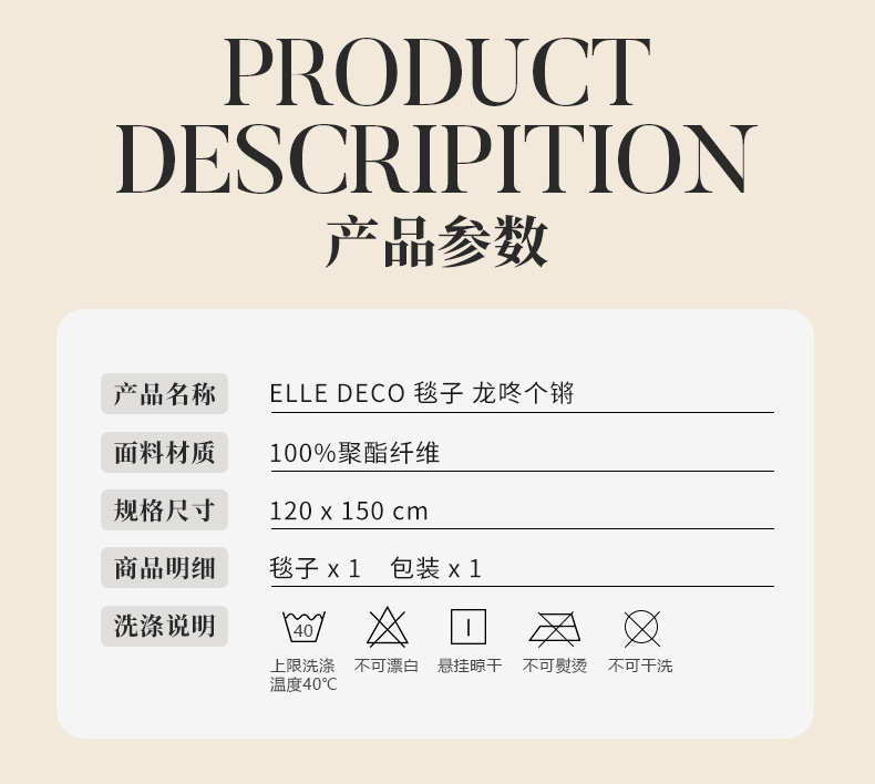 商品名称:法国ELLE DECO毛毯-龙咚个锵