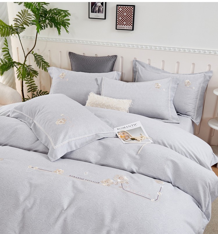 悠梦嘉居 YJ1569 轻奢全棉磨毛刺绣四件套 200x230 典雅灰(内蒙、新疆、西藏、青海、宁夏、甘肃运费另算)