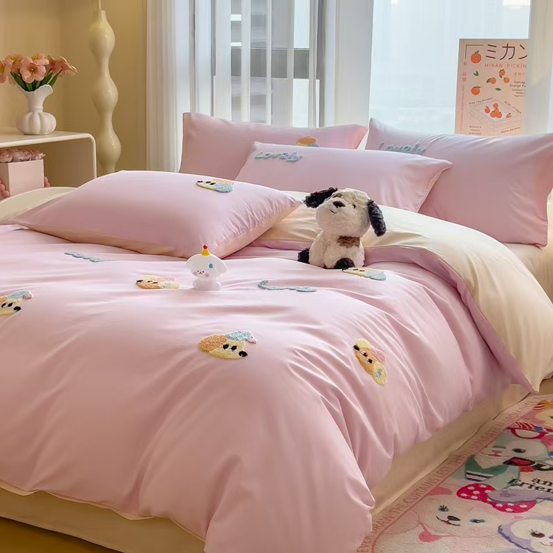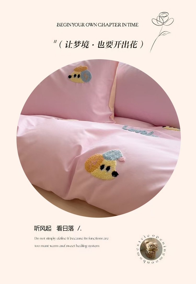 商品名称:悠梦嘉居 YJ1533 全棉卡通毛巾绣三件套 155*200 欢乐小狗玉粉(内蒙、新疆、西藏、青海、宁夏、甘肃运费另算)