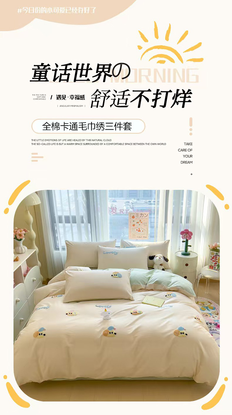商品名称:悠梦嘉居 YJ1533 全棉卡通毛巾绣三件套 155*200 欢乐小狗浅黄(内蒙、新疆、西藏、青海、宁夏、甘肃运费另算)